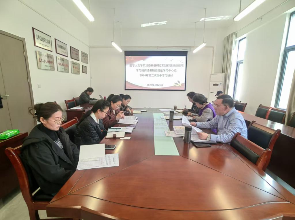 3月26日,医学人文学院党委在云漫湖校区善思楼2-40会议室开展树立和践行正确政绩观学习教育读书班暨理论学习中心组2026年第二次集中学习研讨,学院副科级以上干部、各党支部书记、各科室、学系、教研室(中心)负责人参加。会议由院长冯广卫主持。 会上,集中学习了习近平总书记在省部级主要领导干部学习贯彻党的二十届四中全会精神专题研讨班上的重要讲话精神,习近平总书记在参加十四届全国人大四次会议江苏代表团时的重要讲...