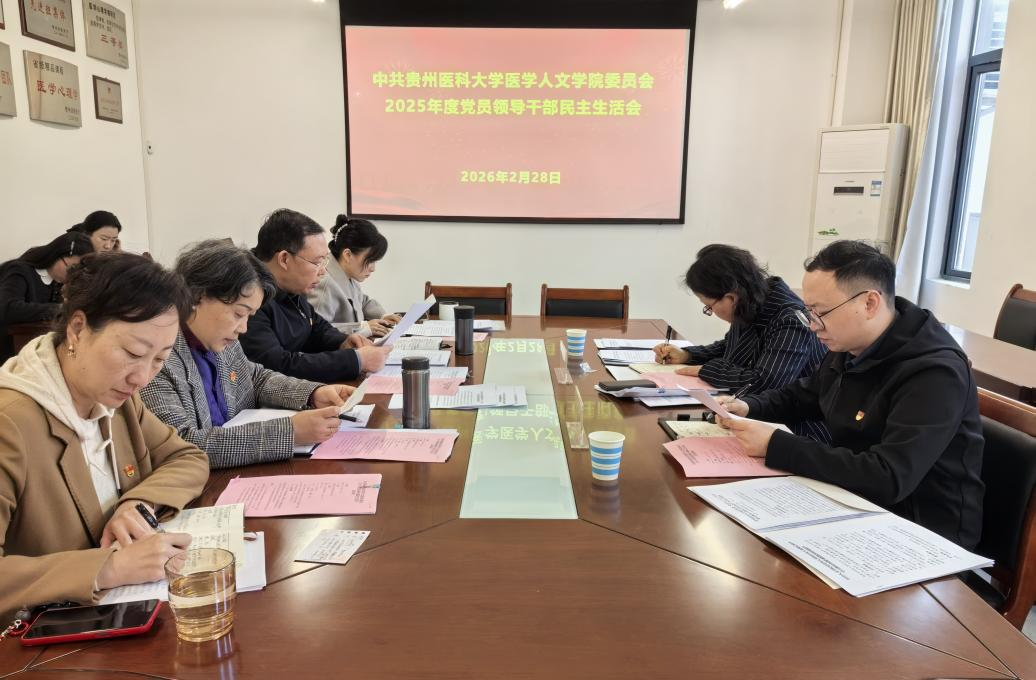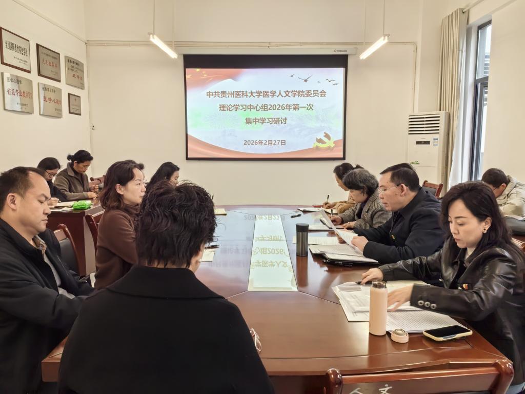 2月27日,医学人文学院党委理论学习中心组在云漫湖校区善思楼2-40会议室开展2026年第一次集中学习研讨,学院党委理论学习中心组成员出席,学院副科级以上干部、各党支部书记、学系、教研室(中心)负责人列席。会议由院长冯广卫主持。 会上,集中学习了习近平总书记在中央政治局民主生活会上的重要讲话精神,习近平总书记对深入贯彻中央八项规定精神学习教育的重要指示精神,习近平总书记关于安全生产重要论述,《中国共产党章...