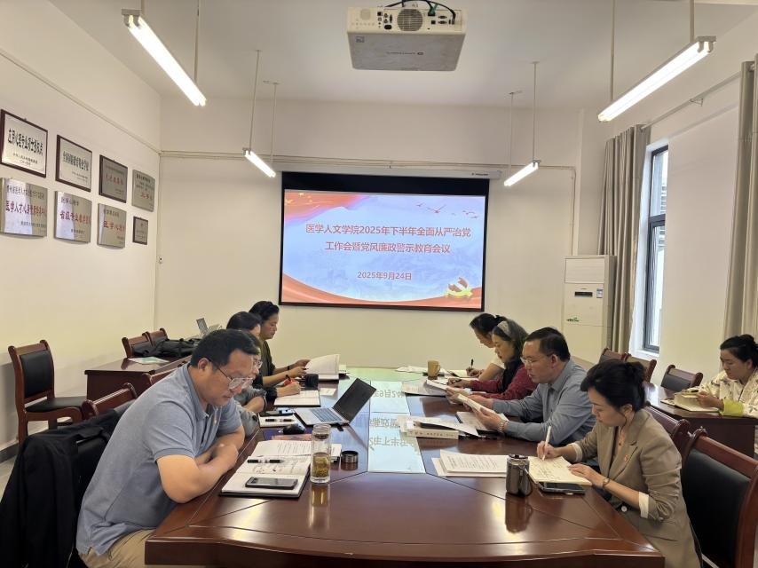 9月24日,医学人文学院在云漫湖校区善思楼2-40会议室开展了2025年下半年全面从严治党工作会暨党风廉政警示教育会议。学院副科级以上干部,各党支部书记、教研室(中心)负责人参加。会议由院长冯广卫主持。