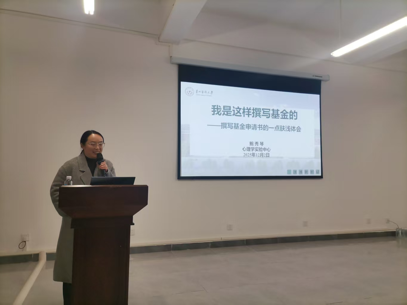 12月2日,学院邀请马克思主义学院副院长禹辉映博士、学院今年获得国家自然科学基金立项的鲍秀琴博士,在学院善思楼二楼2-34会议室开展了国家社会科学基金、国家自然科学基金项目申报经验分享会。院长冯广卫、正处级组织员刘雪梅、党委副书记兼纪委书记马琳娜、副院长彭丹出席,学院全体教师及应用心理学专业研究生共60余人参加,冯广卫主持分享会。