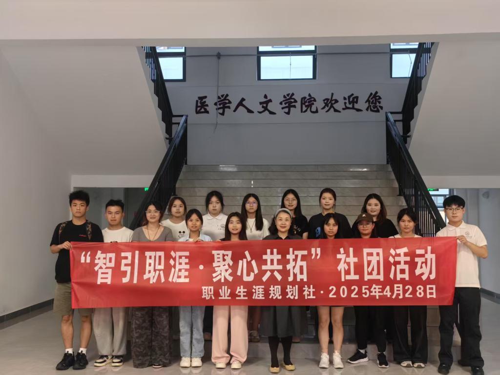 我校生涯规划社团以“提升学生生涯管理与就业能力”为宗旨,在医学人文学院指导老师刘雪梅的带领下,着力打造“智引职涯·聚心共拓”品牌项目。该项目体系涵盖生涯意识唤醒、自我与职业探索、职业发展能力提升等多个维度,于每学年春秋两季开展生涯体验与就业赋能系列活动。目前,社团已成功组织招新迎新、换届选举、团队建设、生涯规划咨询、“生涯幻游”体验、规划思维讲座、简历制作辅导、职业规划大赛指导等多种职业发展类活动。