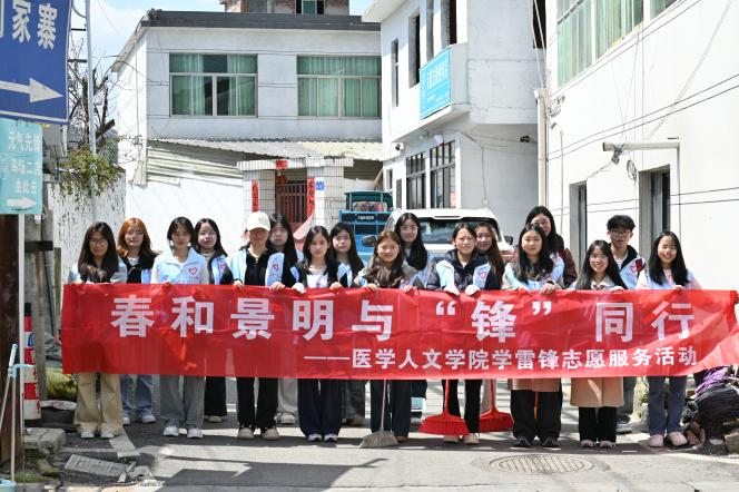 为深入弘扬雷锋精神,传承志愿服务理念,引导青年学生在实践奉献中锤炼品格、增长才干,切实履行新时代青年的责任与担当,贵州医科大学医学人文学院于2026年3月12日组织志愿者队伍走进马场镇,开展“春和景明与‘锋’同行”环境卫生整治志愿服务活动,以实际行动书写新时代雷锋故事。